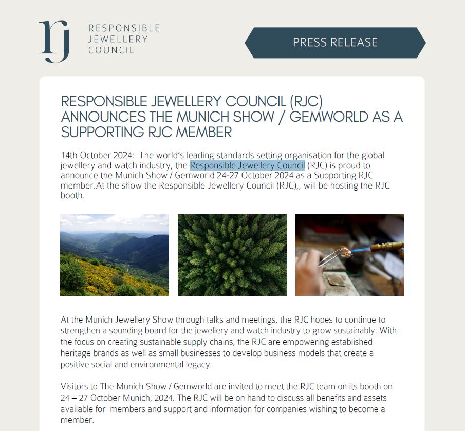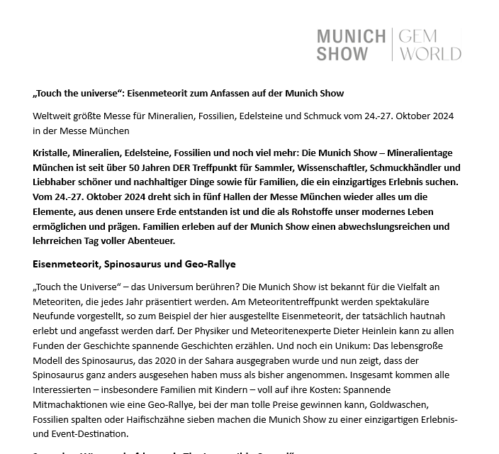 Here you will find press releases from the Munich Show and Gemworld Munich.